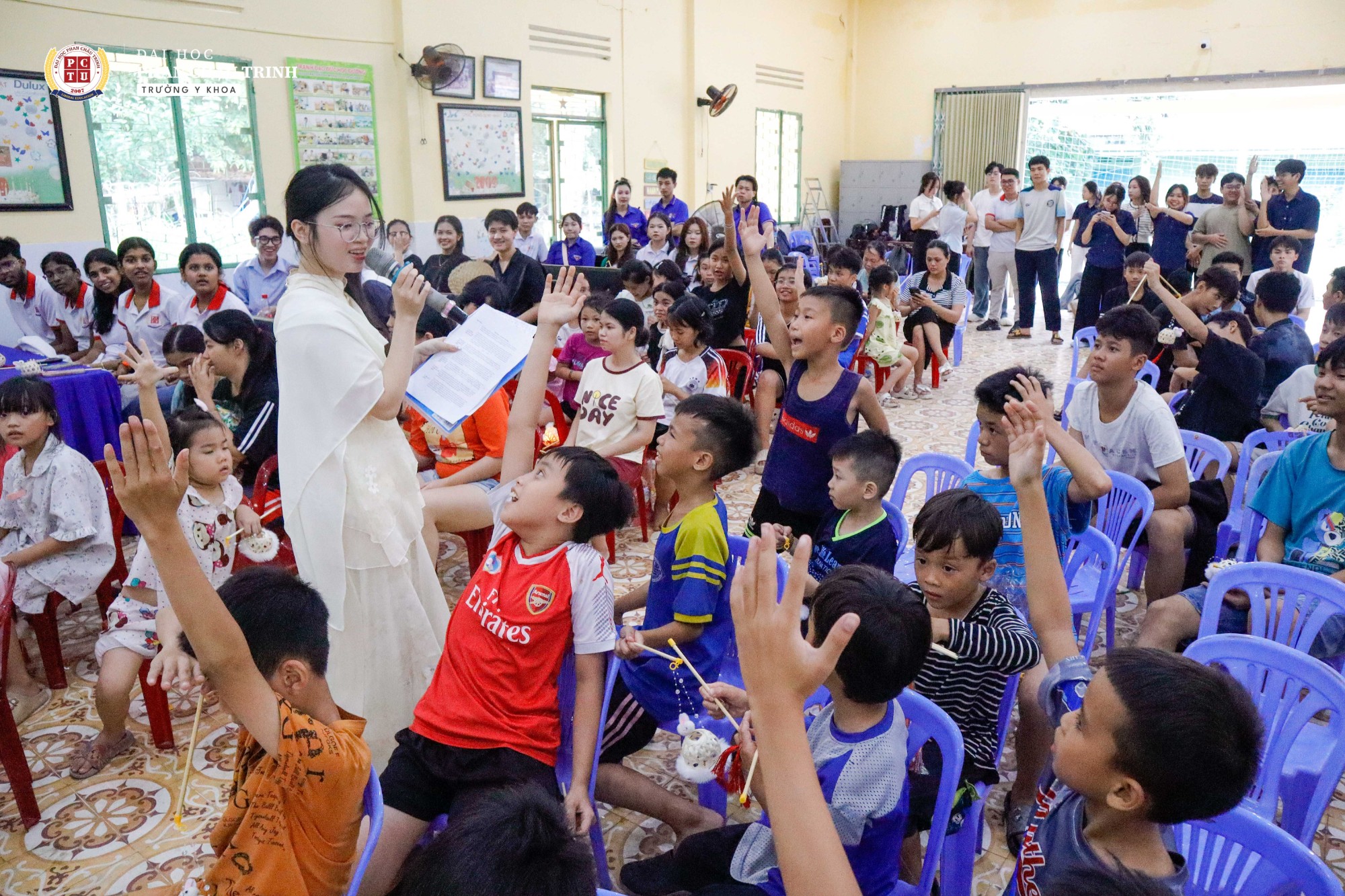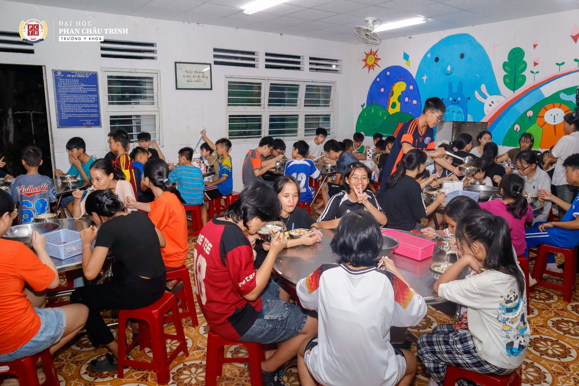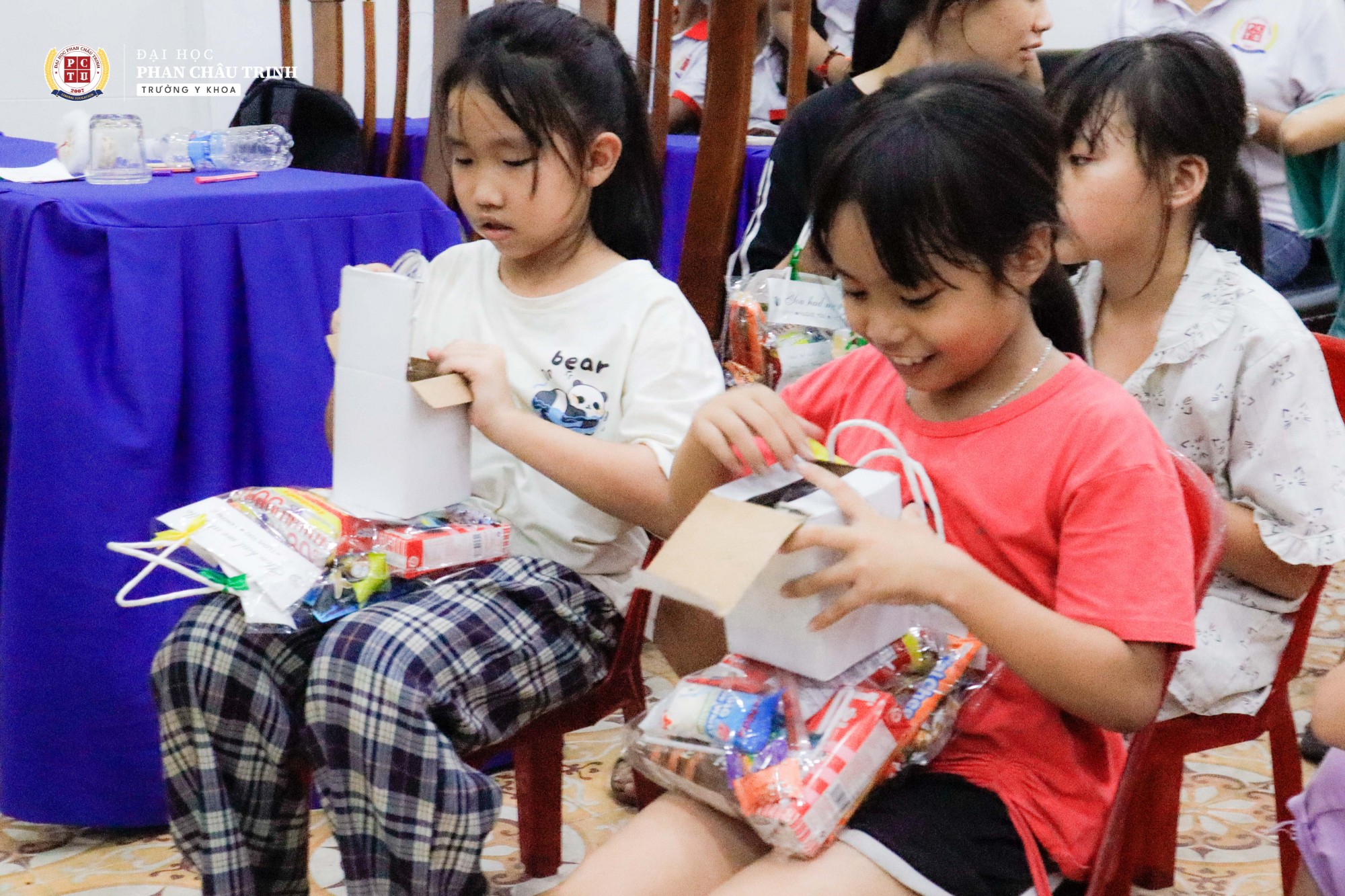 Throughout the program, the Village of Hope was filled with bursts of laughter and waves of excitement. Joyful music performances and interactive mini games kept the atmosphere lively. The highlight came with the vibrant lion dance, when bright red and golden colors blended with the rhythmic beating of drums, illuminating the entire Mid-Autumn space. The children held hands, their sparkling eyes fixed on every move of the lion, their innocent smiles lighting up the night sky of childhood. It was an unforgettable moment not only for the children but also for PCTU students – the “bearers of the moonlight festival” to the village.