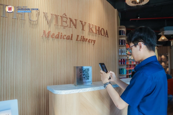 At Phan Chau Trinh University, the library model is no longer limited to a traditional book storage space. Instead, the university has implemented a digital library, allowing students to access an integrated medical resource repository by scanning QR codes and logging in with their personal accounts.
