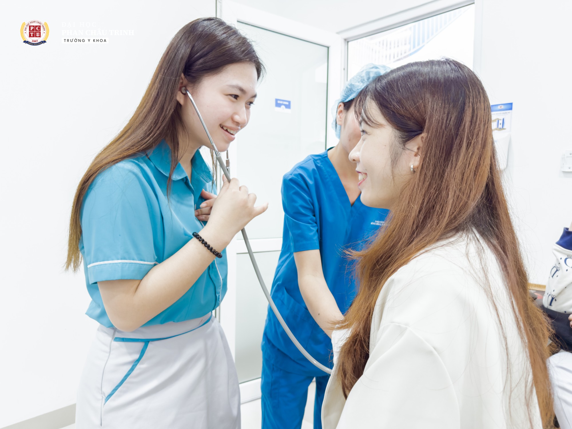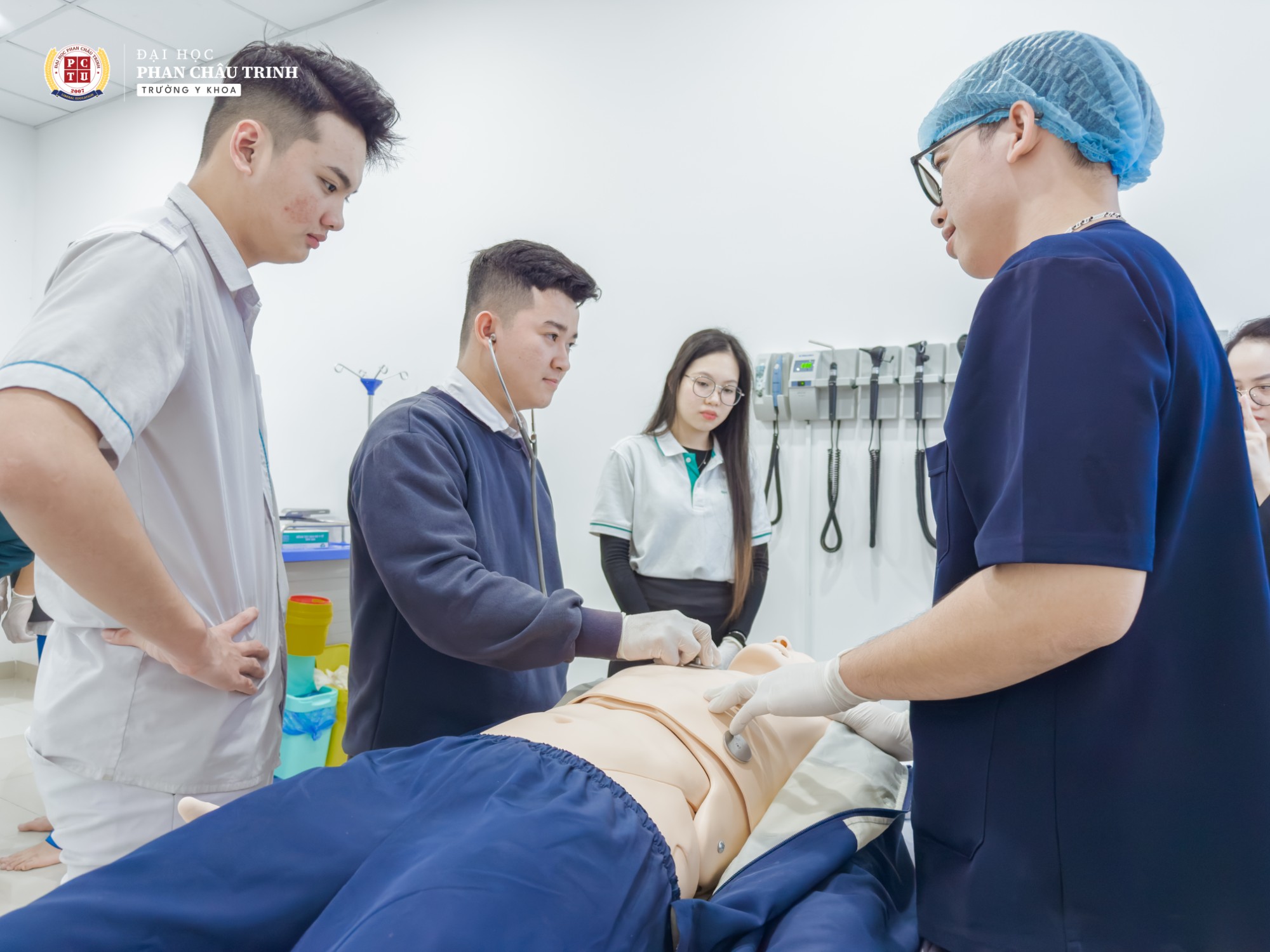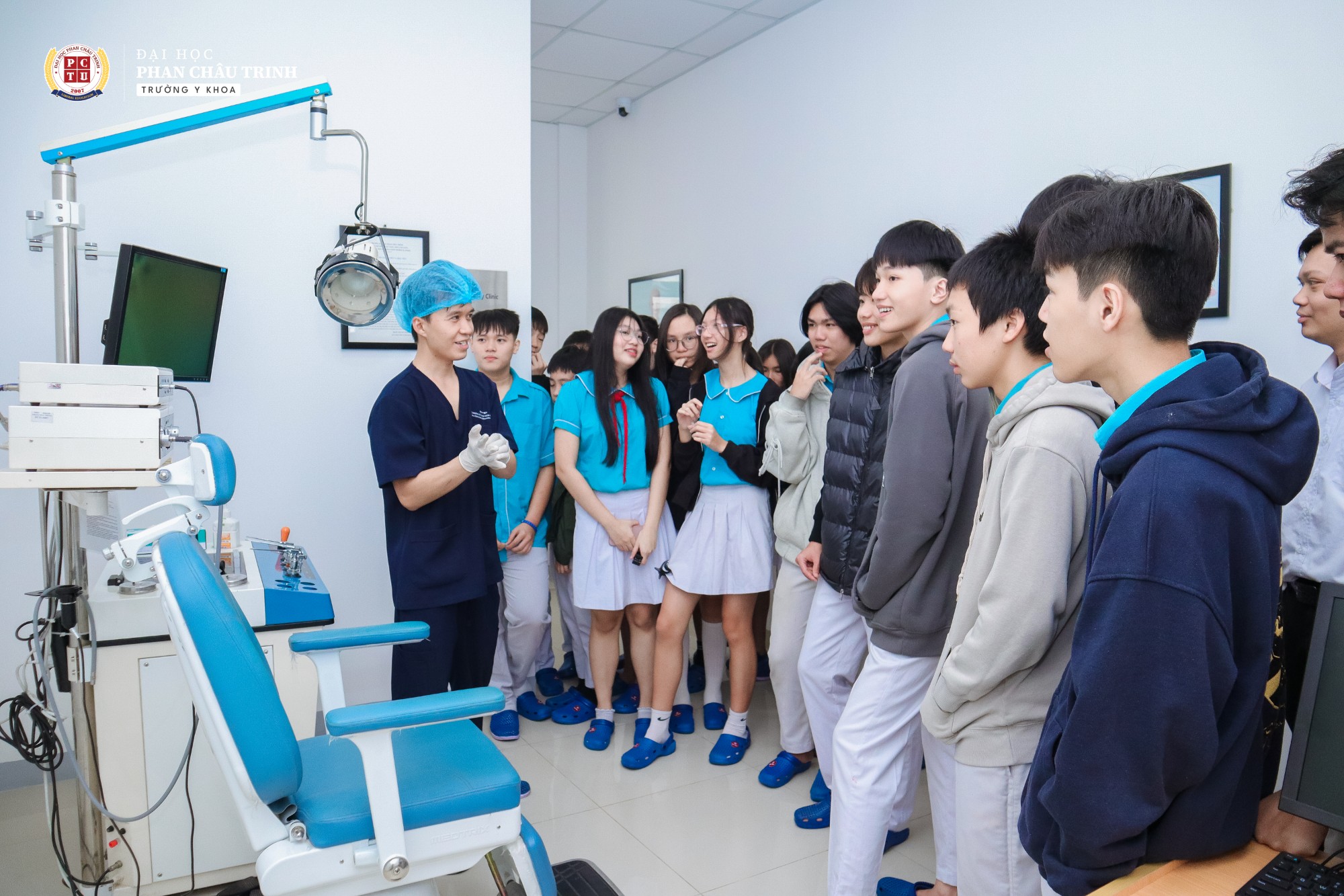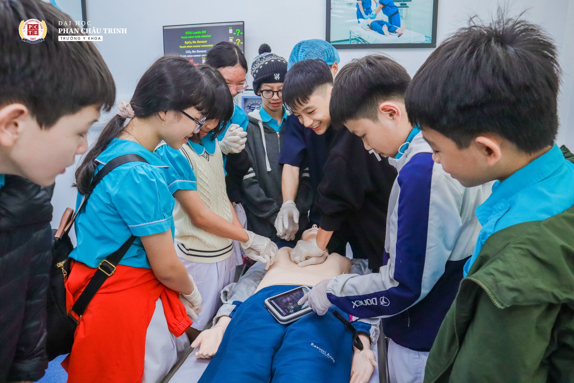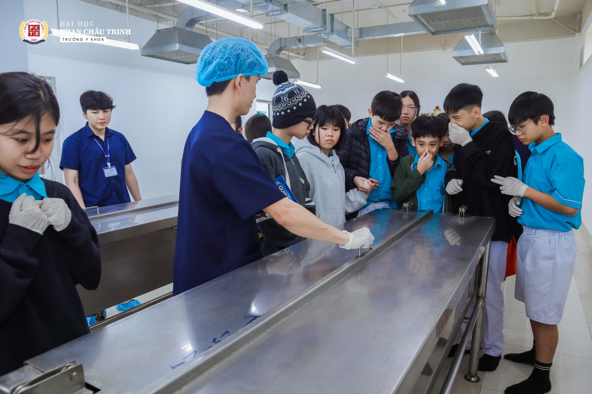 This morning (December 1), more than 70 students from Sky-Line Secondary & High School (Da Nang), accompanied by their teachers, visited and experienced the real-world training environment of health sciences at Phan Chau Trinh University of Medicine (PCTU). This activity is part of Sky-Line’s comprehensive career orientation program, giving students an authentic and lively perspective on the medical profession—an area that demands dedication, resilience, and strong professional competence.