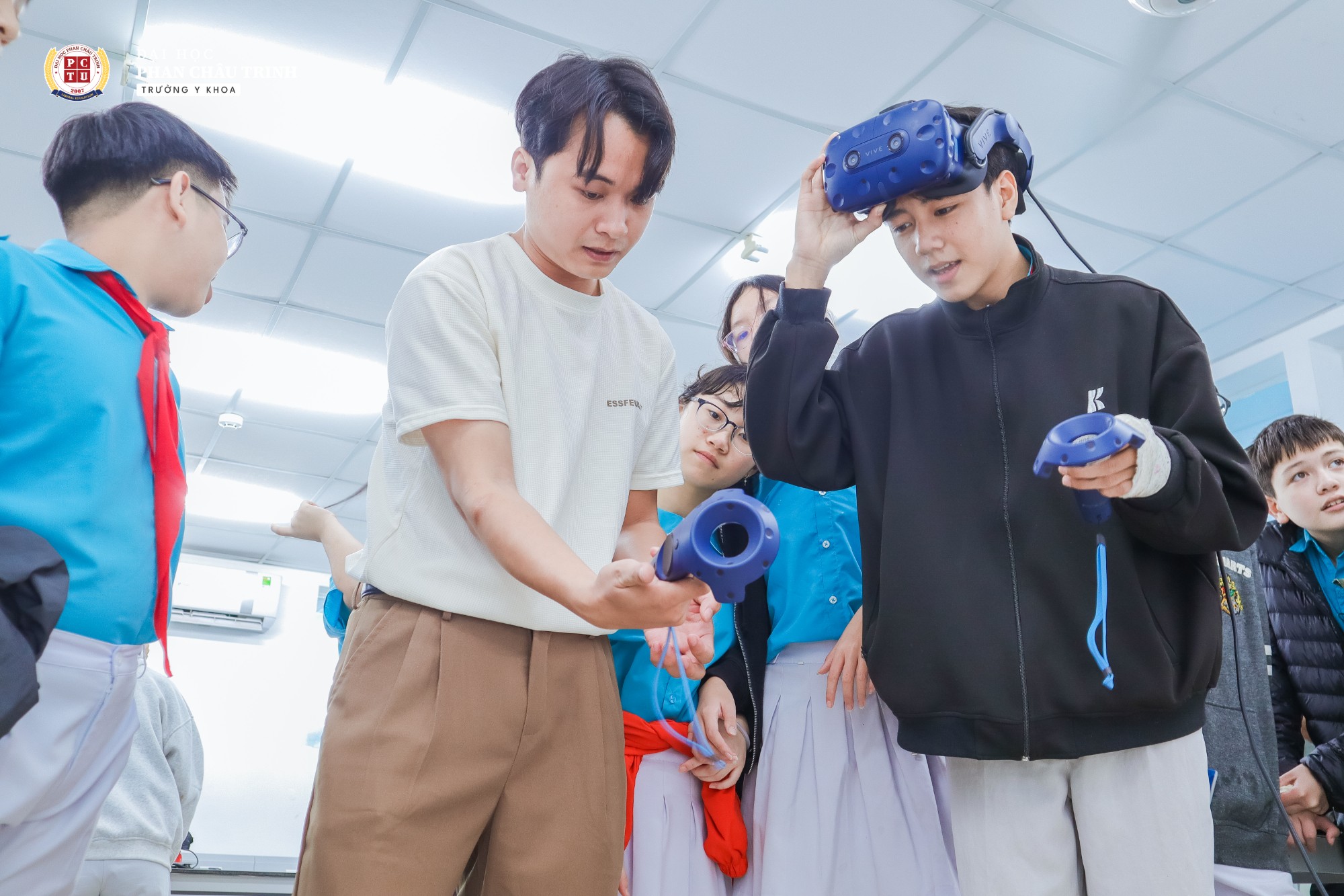 Upon arriving at PCTU, the students were introduced to the unique Institute–School model, a typical ecosystem in medical education where theory and practice always go hand in hand. Here, health science students gain early exposure to real professional experiences from their very first semesters. Teachers also shared the learning journey required to become future doctors or healthcare workers, helping the students visualize the career paths they are interested in.