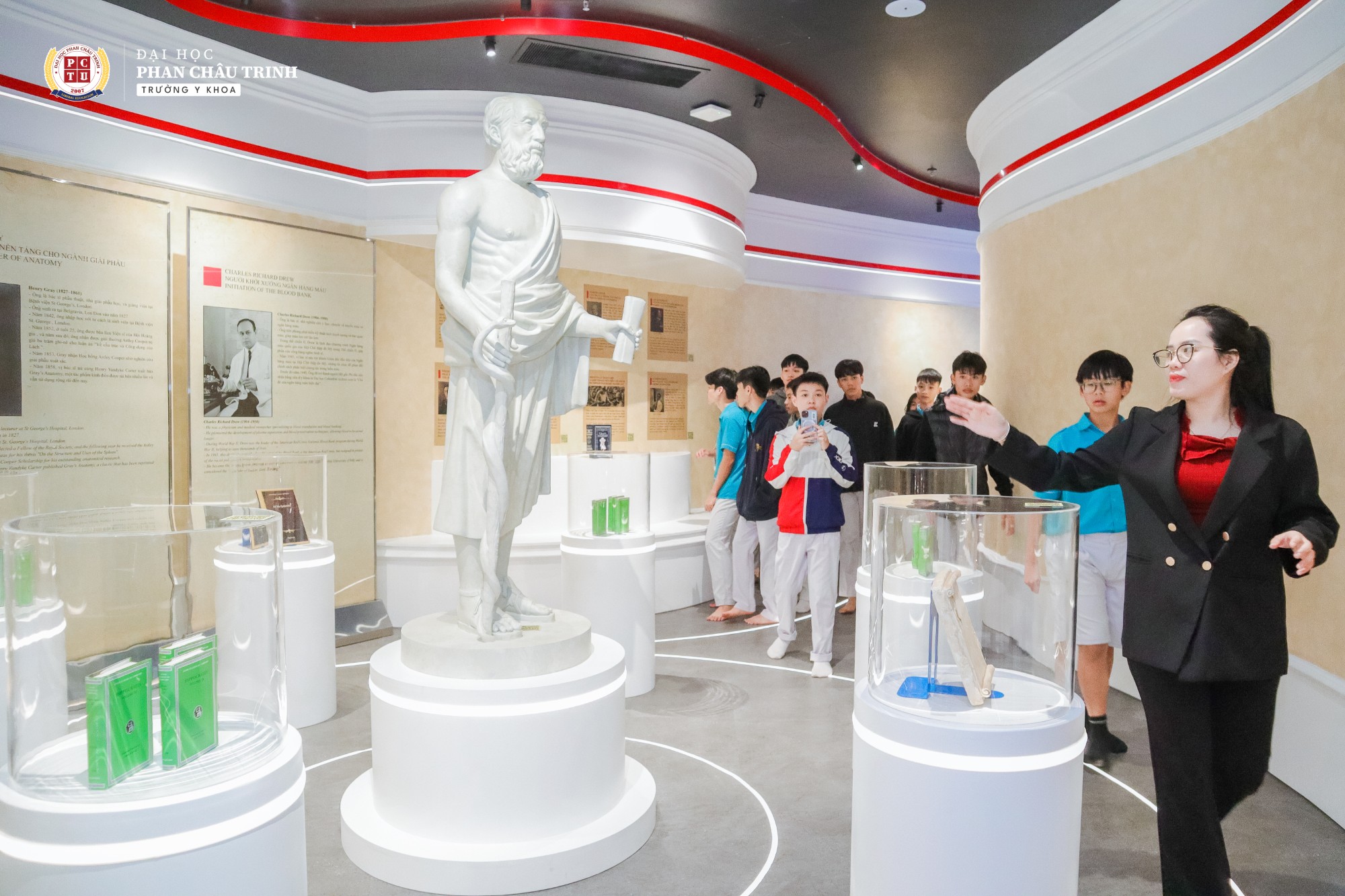 After the simulation hospital, the group continued to explore the Medical Museum, a unique exhibition space that “time-traveled” them through medical stories from ancient to modern times. This experience helped students understand the history of medicine in Vietnam and around the world, while also imagining the future of healthcare in the AI era—nurturing dreams of becoming health science students.