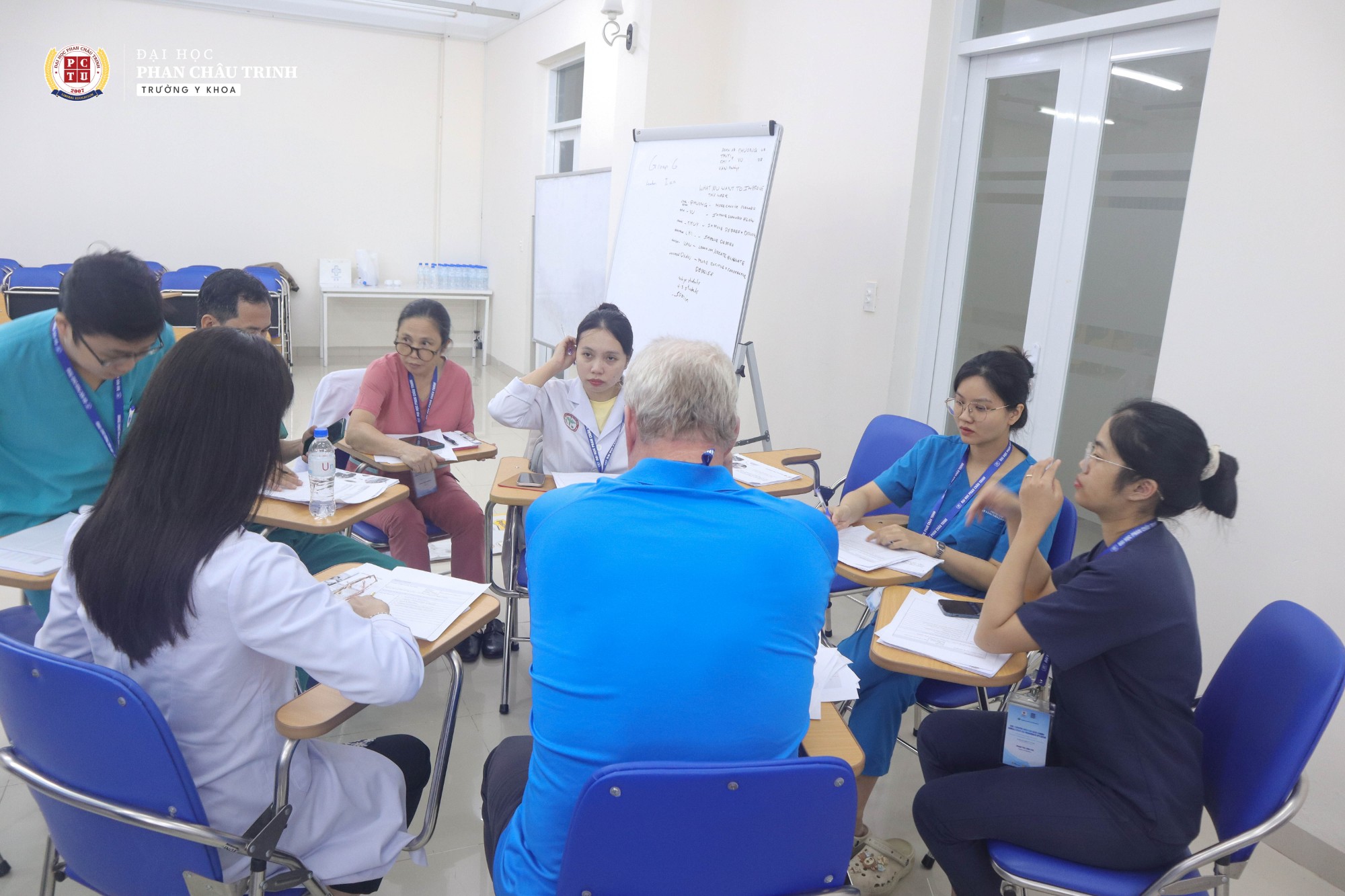 Tham gia khóa học có hơn 40 giảng viên của Nhà trường là các bác sĩ và điều dưỡng – những người trực tiếp giảng dạy tiền lâm sàng cho sinh viên các ngành sức khỏe. Ngay trong buổi sáng đầu tiên, các học viên đã có buổi học mở đầu đầy hứng khởi với những bài giảng sinh động, kết hợp nhuần nhuyễn giữa lý thuyết, thảo luận nhóm và thực hành trực tiếp tại Bệnh viện Mô phỏng của PCTU.