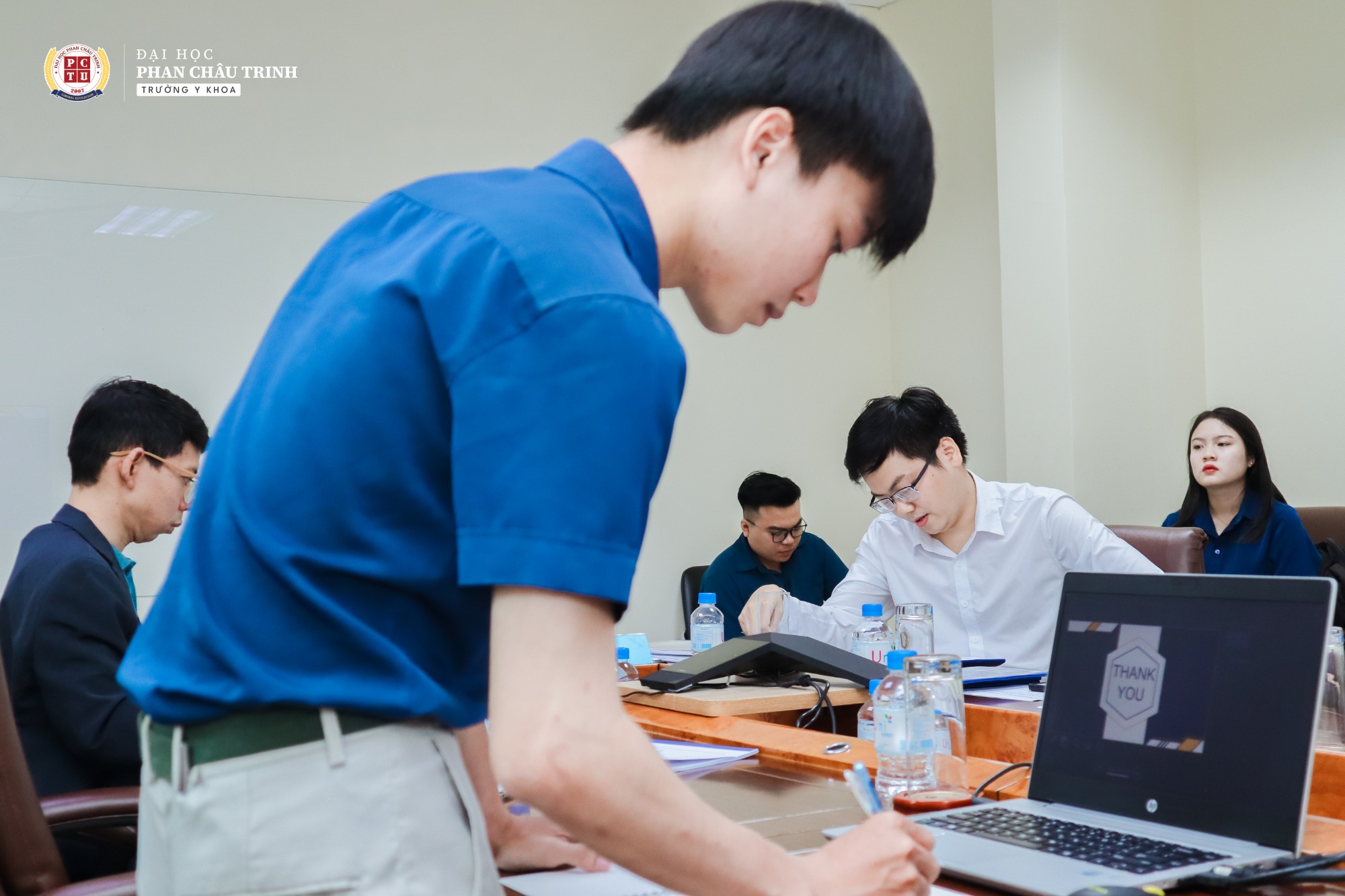 Tại buổi xét duyệt, các sinh viên đã tự tin làm rõ mục tiêu nghiên cứu trên lâm sàng, phương pháp luận và kế hoạch triển khai cụ thể cho từng giai đoạn. Đặc biệt, nhằm hỗ trợ tối đa cho sinh viên năm thứ 5 đang thực tập tại các bệnh viện, Nhà trường đã triển khai song song hình thức báo cáo trực tiếp và trực tuyến. Sự linh hoạt này giúp các sinh viên vừa đảm bảo tiến độ nghiên cứu khoa học, vừa không làm gián đoạn việc trau dồi kỹ năng thực hành tại các cơ sở y tế.