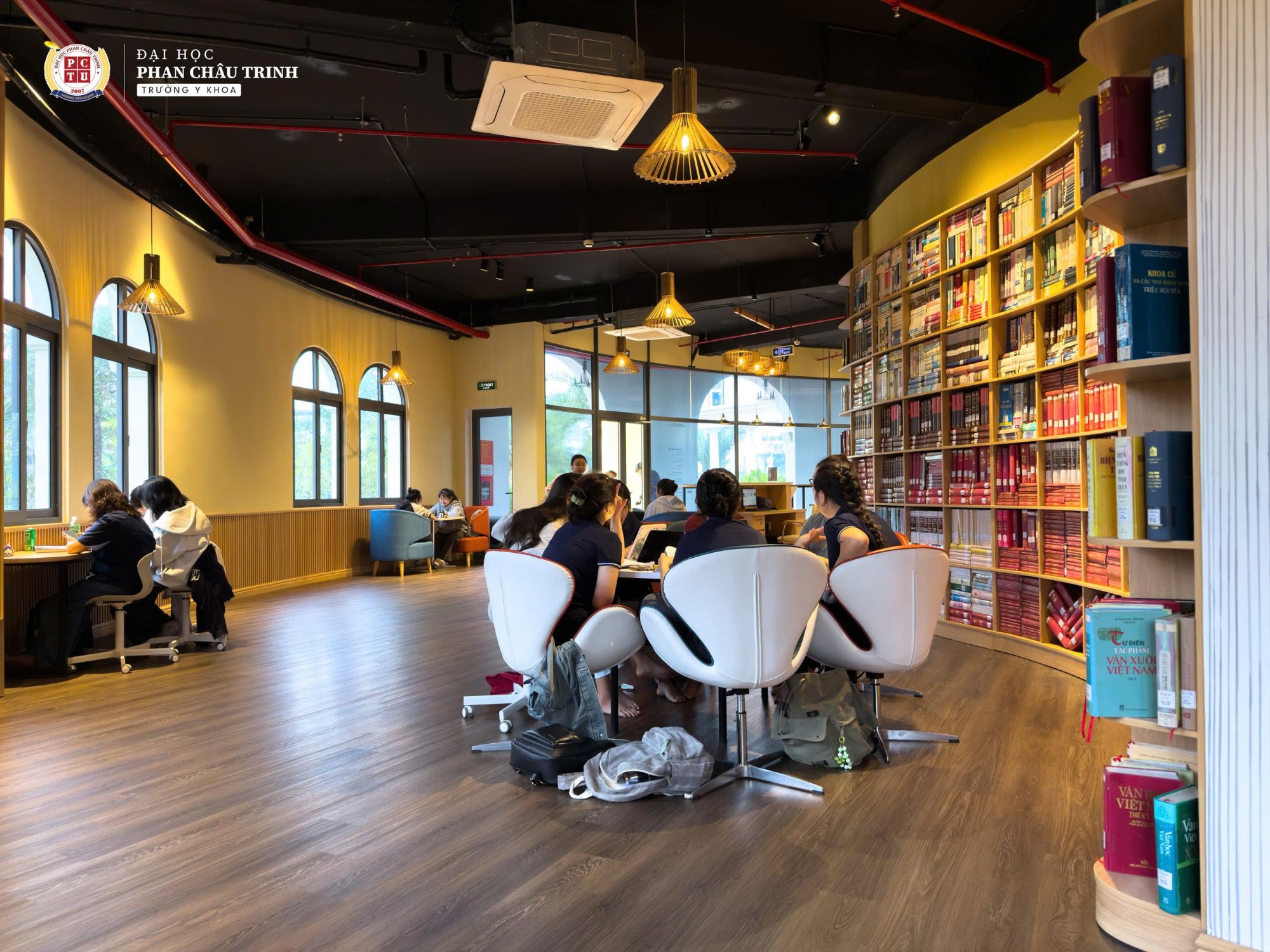 Thứ nhất, không gian Thư viện mới được thiết kế hiện đại và truyền cảm hứng, mang đến môi trường học tập yên tĩnh, thoải mái và giàu năng lượng tích cực. Kể từ khi đi vào hoạt động, thư viện nhanh chóng trở thành điểm đến quen thuộc của sinh viên sau mỗi giờ lên lớp.