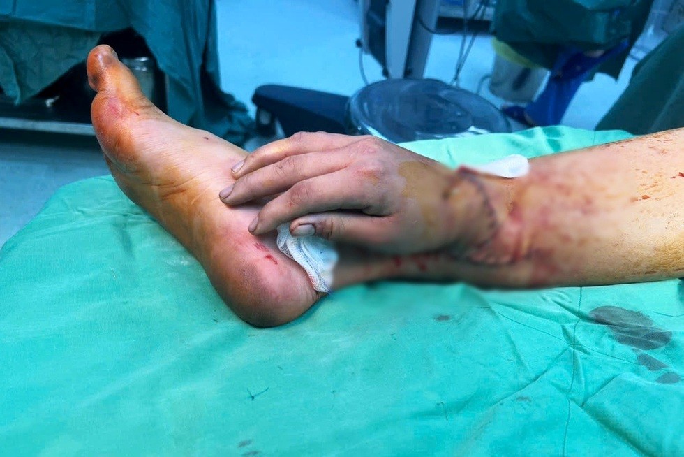 “Nuôi” bàn tay đứt lìa ở chân để giữ trọn thiên chức làm mẹ. Ảnh: Bệnh viện đa khoa Bình Dương