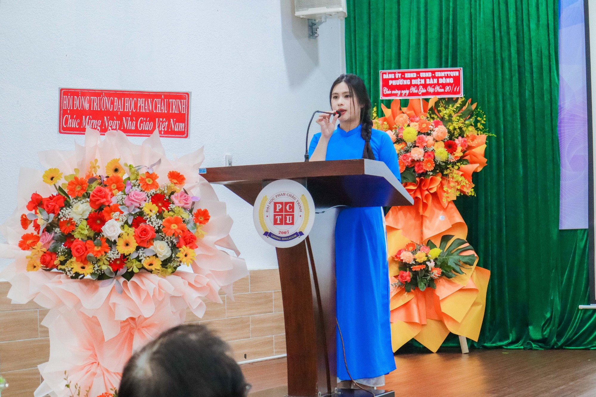 Là 1 sinh viên ngành Răng Hàm Mặt, em nhớ mãi những kỷ niệm, những lời thầy cô đã dạy em, từ những chi tiết rất nhỏ, như cách cầm gương, lắng nghe bệnh nhân hay các chi tiết tinh tế khi khám là những điều mà đôi khi không có trong sách vở. Những điều tuy nhỏ ấy đã giúp em hiểu sâu sắc được rằng nghề của mình không những đòi hỏi chuyên môn mà còn cần sự tỉ mỉ và cái tâm dành cho bệnh nhân. Điều này mãi là bài học và cái tâm quý giá trong con đường nghề nghiệp sau này. Em thay mặt toàn thể sinh viên PCTU kính chúc thầy cô 1 ngày lễ 20-11 thật nhiều niềm vui và hạnh phúc. Vũ Khánh Duyên (22RHM1), đại diện sinh viên toàn trường, chia sẻ